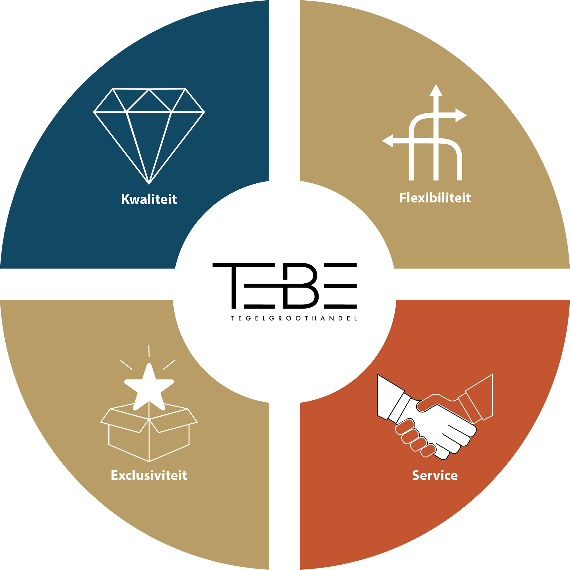 De kernwaarden van Tebe zoals hieronder weergegeven, vormen de stevige pijlers van het bedrijf.